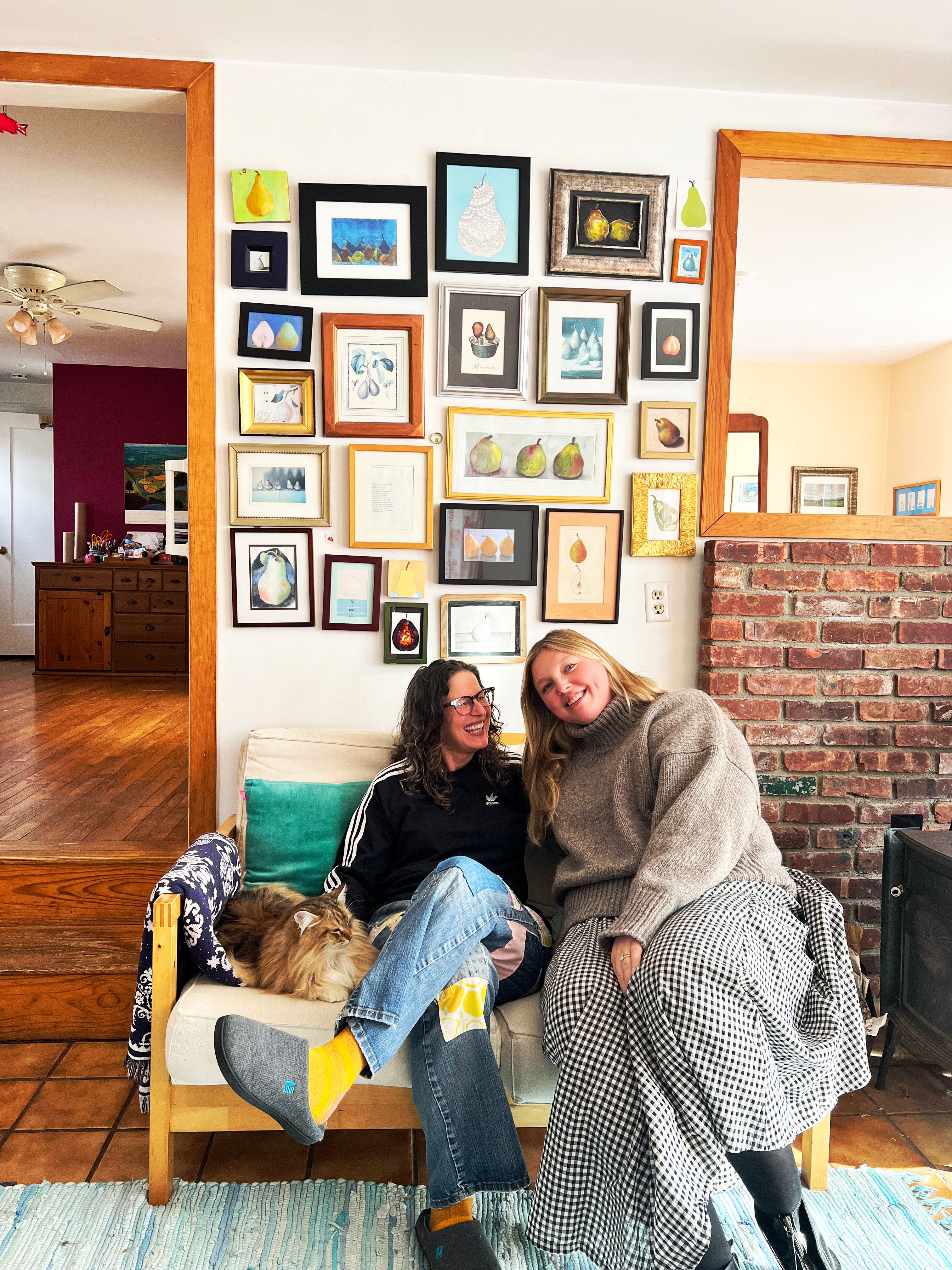 Catherine Newman (left), and Olivia Muenter in front of Catherine’s Pear Wall